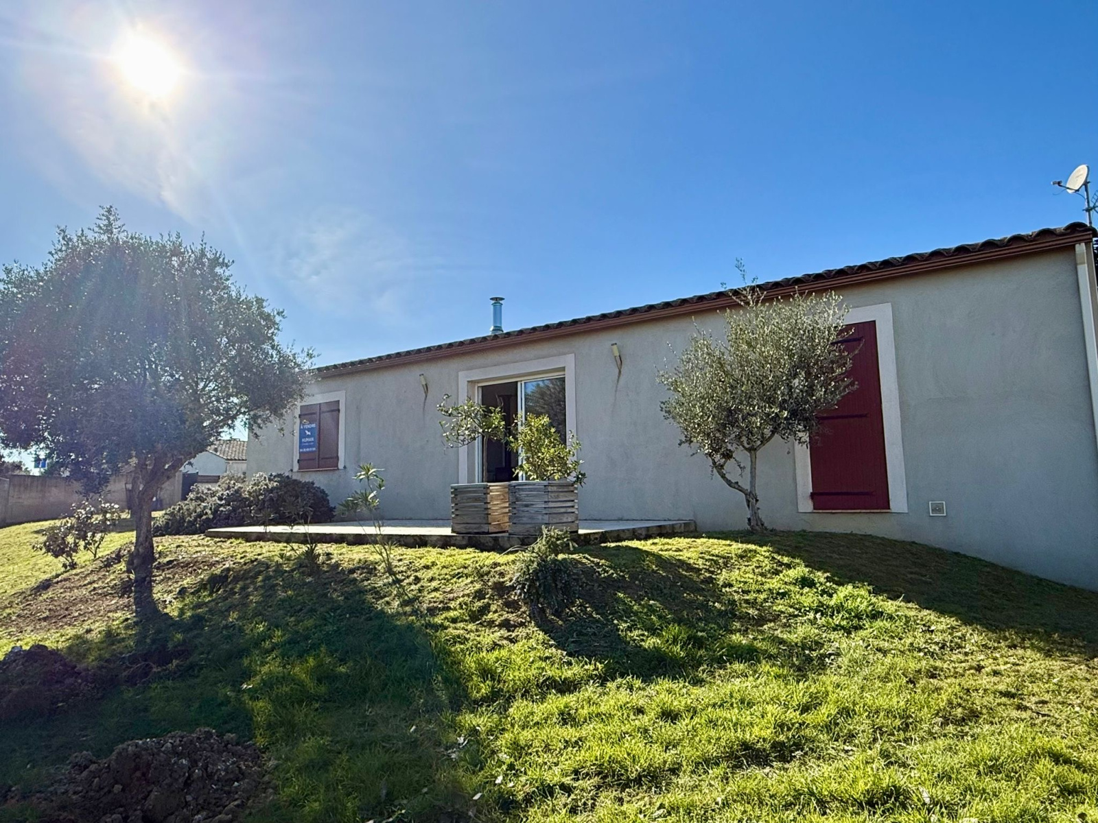 VILLEMOUSTAUSSOU - Proche école et toutes commodités, maison de 2011 de plain-pied, 90 m2 habitables sur une parcelle de 625m2 entièrement clôturée. Pièce de vie de 48m2 avec poêle à bois récent et cuisine semi-équipée. Entrée avec grand placard. Elle dispose de 3 chambres, d'une salle de bain et d'un wc séparé. Garage avac accès maison de 15,6m2. La maison offre une terrasse carrelée de 20 m2.